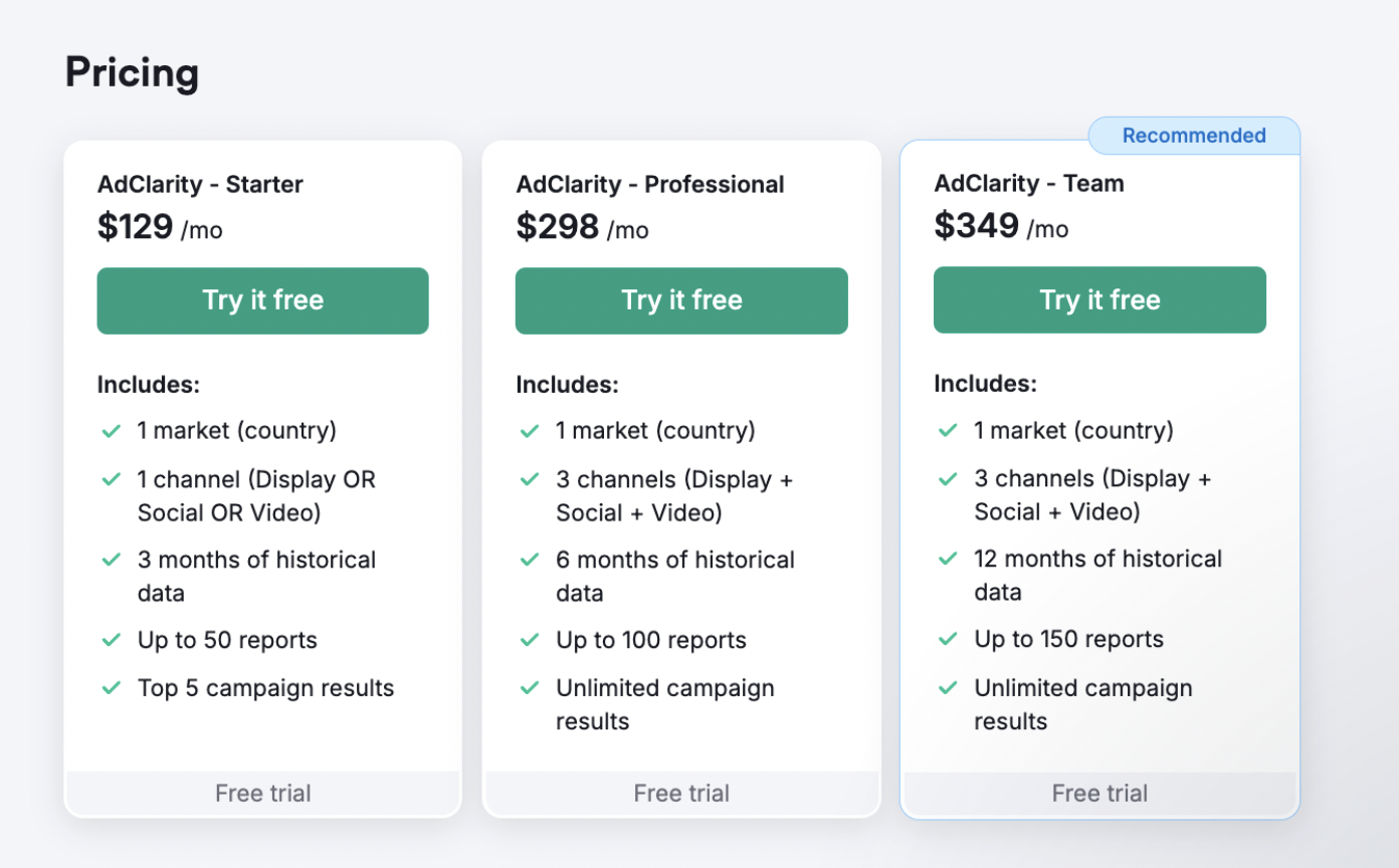 AdClarity is a core tool inside the Advertising Toolkit and is included with the Pro plan. You can explore the toolkit with a free trial.